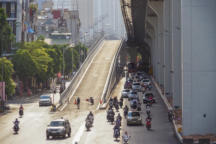 Sau hơn 2 năm thi công (từ tháng 4/2018), phần đường trên cao đoạn Ngã Tư Vọng - Ngã Tư Sở đã hoàn thành với các hạng mục chính gồm, cầu chính (mặt cắt ngang tuyến đường bộ trên cao B = 19,00m) và cầu dẫn (B = 7,00m).