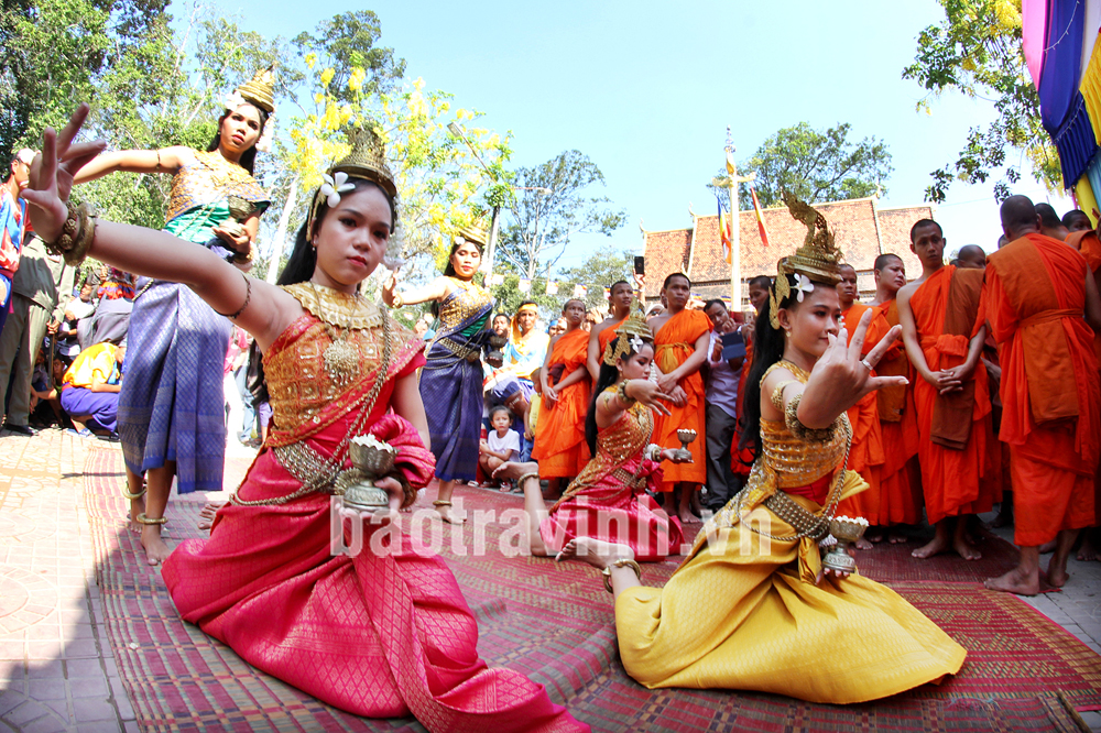 Tiết mục múa mừng Chôl Chnam Thmây tại chùa Âng (Phường 8, thành phố Trà Vinh). Ảnh: BÁ THI