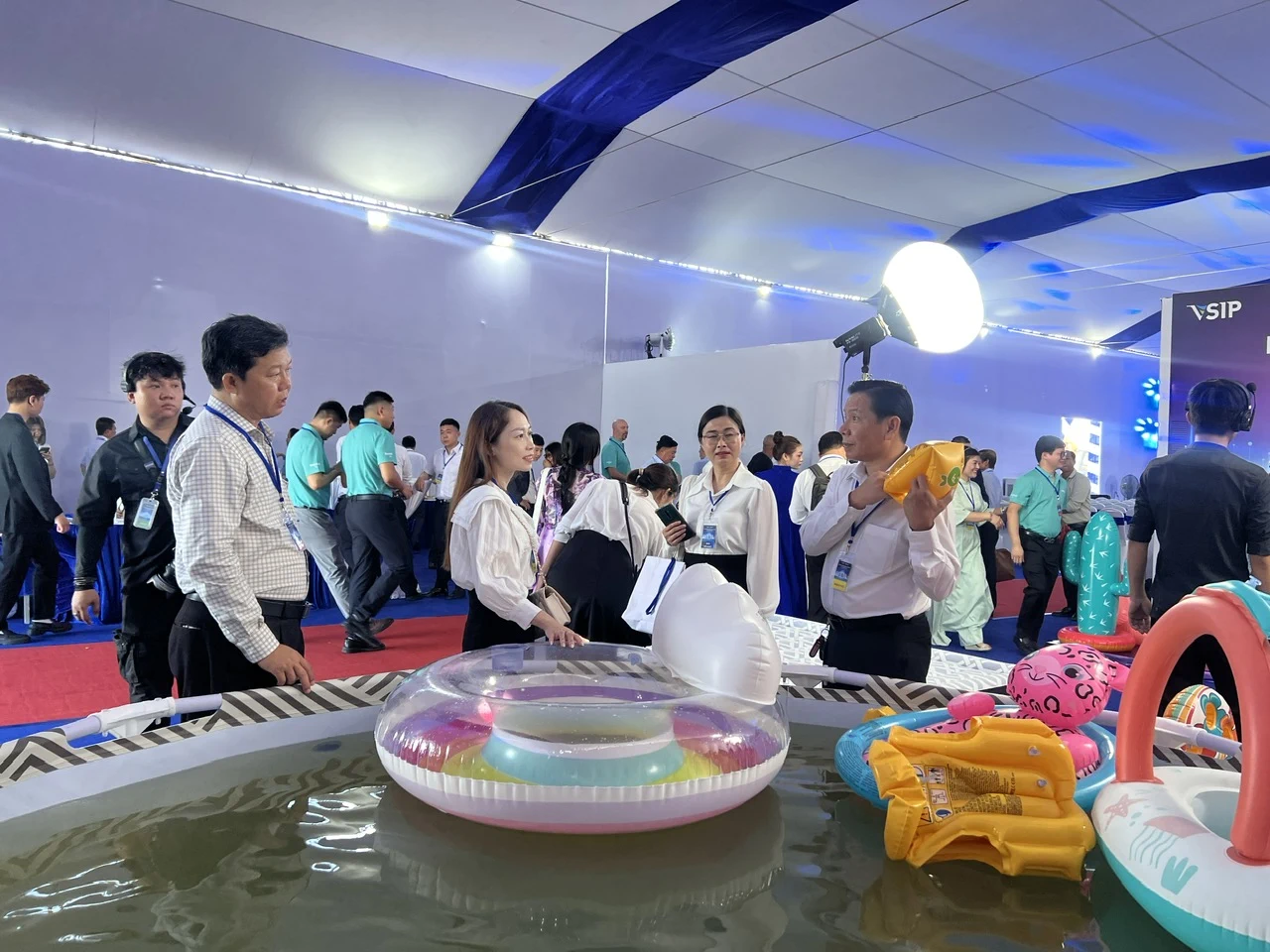 Các sản phẩm do Bestway sản xuất được trưng bày tại lễ khởi động nhà máy.