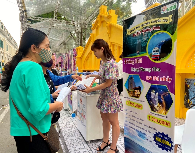 Khu gian hàng các tỉnh, thành giới thiệu du lịch và đặc sản địa phương tại phố Đinh Tiên Hoàng. Khu gian hàng của các cơ quan du lịch quốc tế giới thiệu điểm đến du lịch các nước, thúc đẩy hoạt động du lịch song phương.