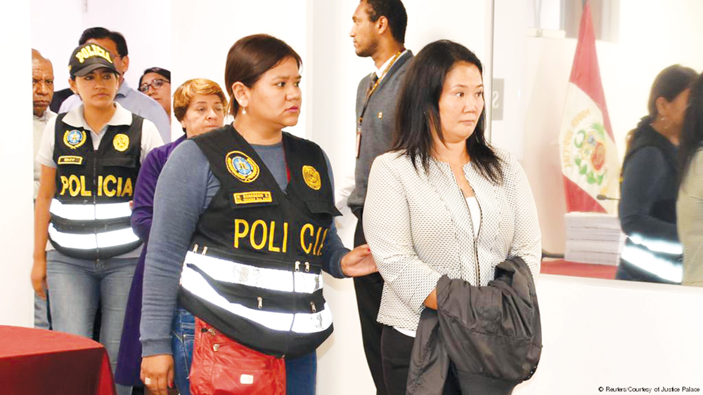 Keiko, chủ tịch đảng Lực lượng Nhân dân (PF) lớn nhất tại Quốc hội, tra tay vào còng sau khi trình diện tại văn phòng công tố để cung cấp bằng chứng về cuộc điều tra nghi vấn tổ chức của bà nhận các khoản đóng góp tài chính từ tập đoàn xây dựng Obebrecht của Brazil hồi thời chính khách 43 tuổi này chạy đua vào ghế tổng thống năm 2011. Keiko bị giam 10 ngày, cùng với 19 người khác, bao gồm nhiều nhân vật cấp cao trong PF.