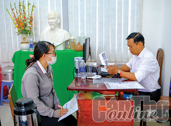 Cán bộ thuế huyện Phong Ðiền hỗ trợ người nộp thuế thực hiện thủ tục liên quan.