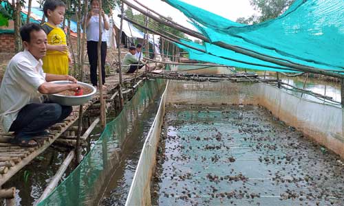Bên cạnh đó, anh Ngọc còn kết hợp nuôi cá trê phía dưới vèo ếch để tận dụng thức ăn thừa và các chất thải của ếch mà không cần tốn thêm chi phí thức ăn nhưng vẫn bảo đảm cá sinh trưởng tốt. Qua hơn 1 năm thực hiện, mỗi tháng anh thu lợi nhuận hơn 50 triệu đồng từ mô hình nuôi trùn quế, ếch, cá.