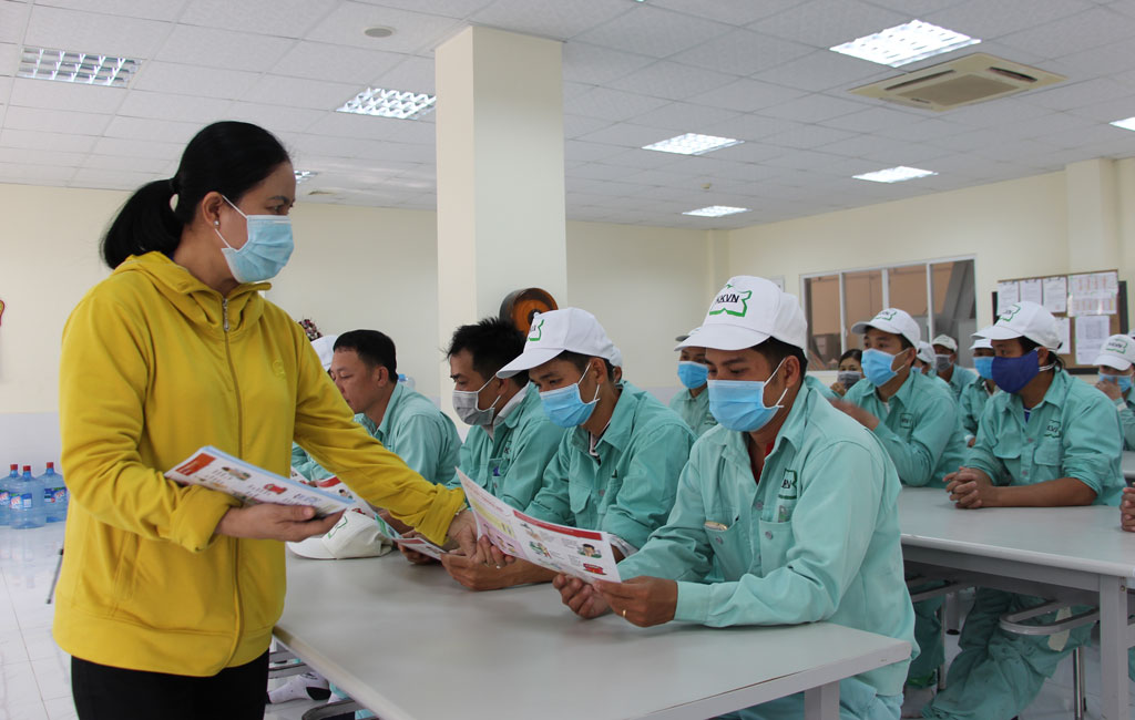 Liên đoàn Lao động huyện Thủ Thừa chủ động đẩy mạnh tuyên truyền phòng, chống dịch bệnh cho công nhân, lao động