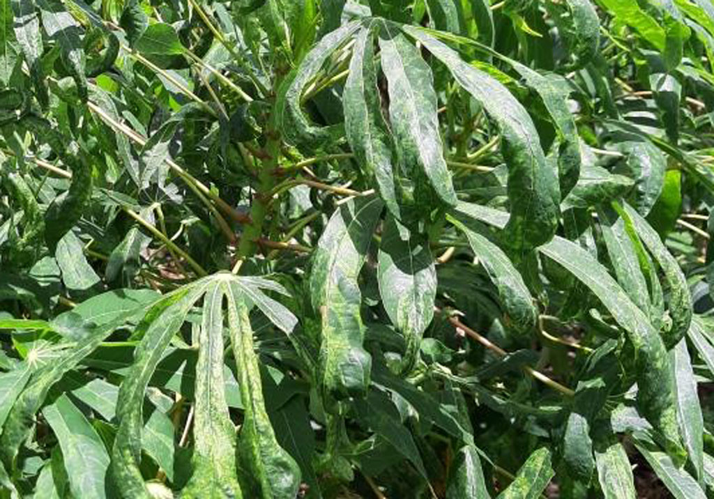 Lá cây mì nhiễm bệnh bị xoăn tít