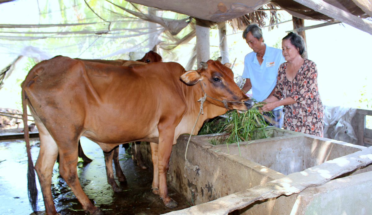 Bà Huỳnh Thị Cúc, ngụ ấp An Hòa 2, xã Bình An chia sẻ: “Tôi vay vốn từ Trung ương Hội Nông dân được 30 triệu đồng và mua 2 con bò cái. Sau đó, bò cái sinh sản được 1 bê con.