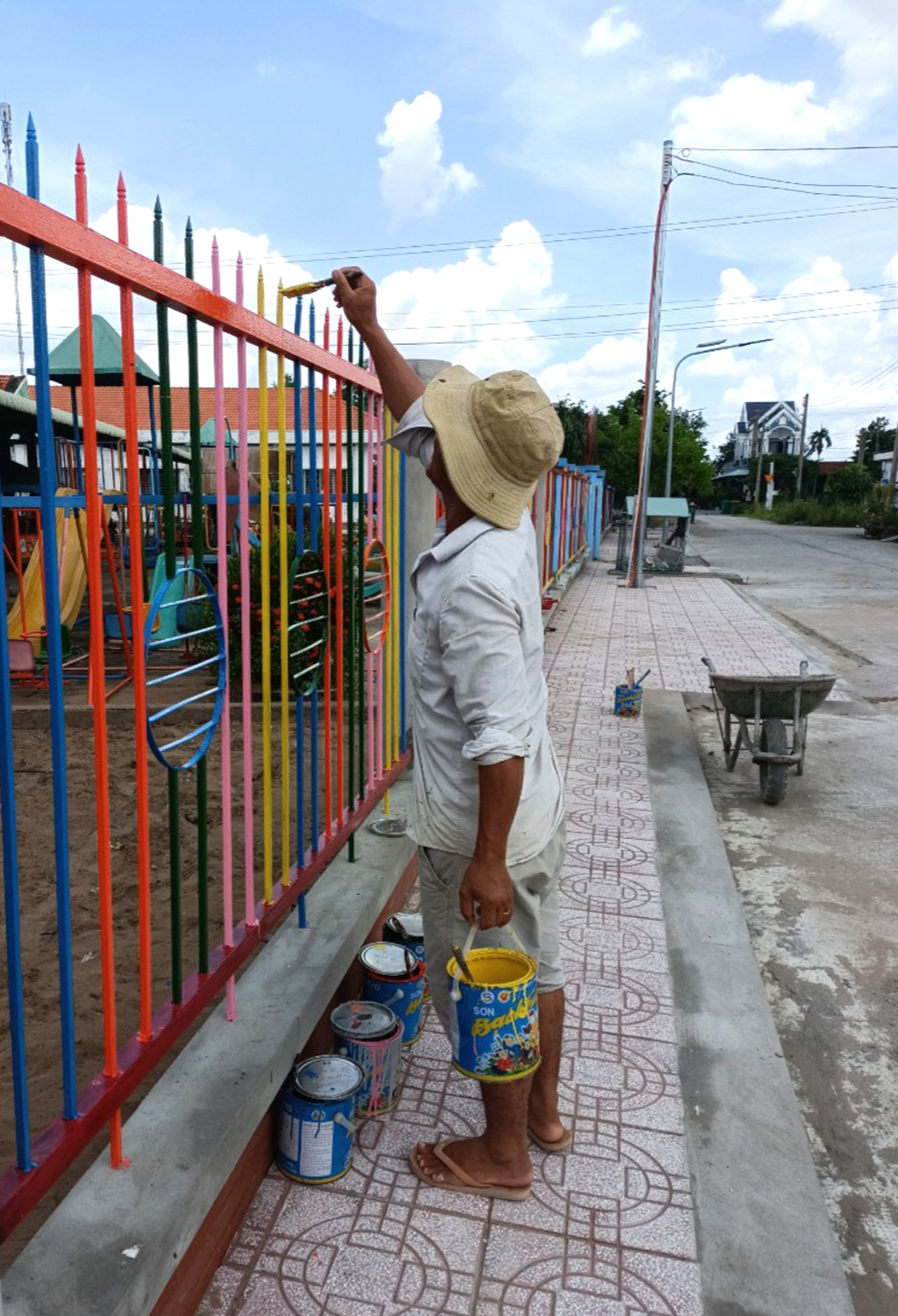 Hàng rào tại Trường Mẫu giáo Long Thuận được sơn lại