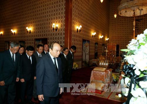 Đoàn đại biểu cấp cao Đảng, Nhà nước CHXHCN Việt Nam do Thủ tướng Nguyễn Xuân Phúc làm trưởng đoàn viếng Nhà Vua Thái Lan Bhumipol Adulyadej. Ảnh: Thống Nhất-TTXVN
