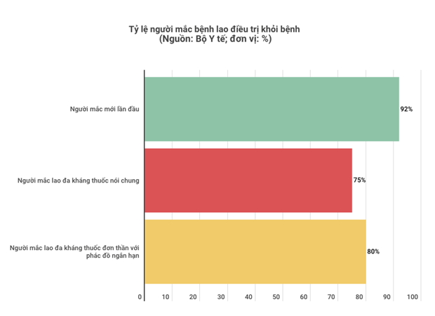 Tỷ lệ khỏi bệnh đã đạt trên 92% cho người mới mắc lần đầu, 75% cho người mắc lao đa kháng thuốc nói chung và 80% cho người mắc lao đa kháng thuốc đơn thuần với phác đồ ngắn hạn, trong khi con số này trung bình toàn cầu là 52%. Ngay cả với lao siêu kháng thuốc đã có phác đồ có thuốc mới và dần bao phủ mở rộng trên phạm vi toàn quốc để khống chế tỷ lệ lây truyền lao kháng thuốc tiên phát trong cộng đồng.