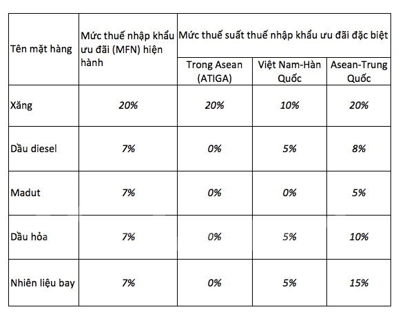 Giải thích về sự chênh lệch giữa thuế nhập khẩu ưu đãi xăng dầu hiện hành (MFN) trong cách tính giá và mức thuế thực tế nhập khẩu từ một số nước ASEAN, Hàn Quốc, đại diện Bộ Tài chính thừa nhận, mức thuế MFN cao hơn.