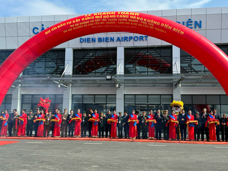 Thủ tướng Chính phủ Phạm Minh Chính tuyên bố và cùng các đại biểu thực hiện nghi thức khánh thành đưa vào khai thác đồng thời 4 dự án giao thông quan trọng gồm: Cảng hàng không Điện Biên; các tuyến đường bộ cao tốc Tuyên Quang - Phú Thọ, Mỹ Thuận - Cần Thơ; cầu Mỹ Thuận 2.