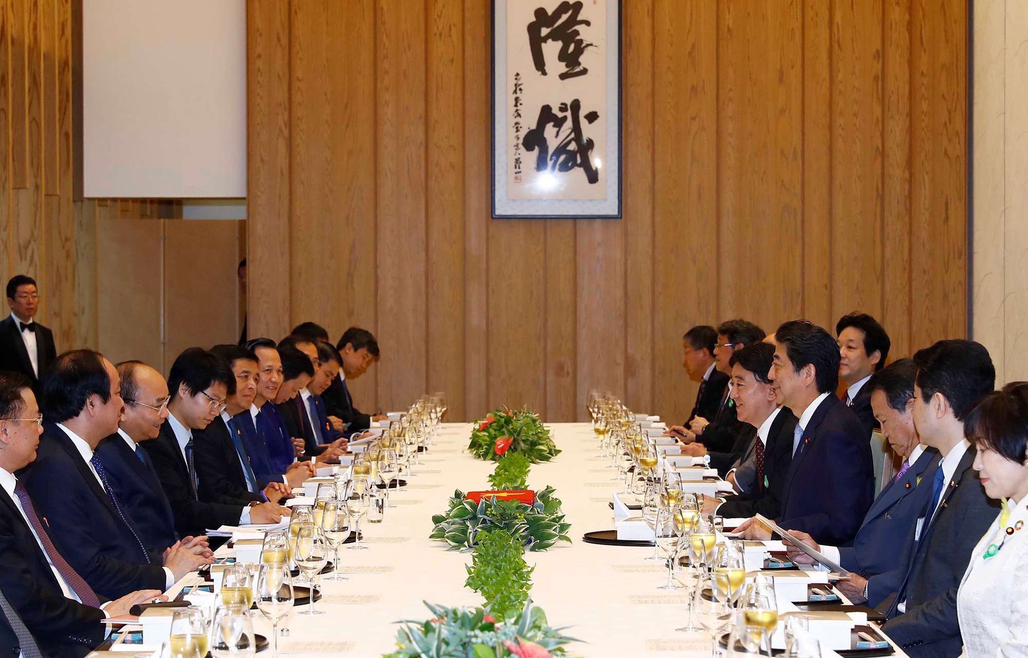 Thủ tướng Nguyễn Xuân Phúc khẳng định Việt Nam luôn coi Nhật Bản là đối tác tin cậy, quan trọng hàng đầu và lâu dài. Thủ tướng A-bê Sin-zô đánh giá cao vị thế, vai trò và những thành tựu đối ngoại của Việt Nam thời gian qua, cảm ơn những sáng kiến và đóng góp tích cực của Thủ tướng và đoàn Việt Nam vào thành công của Hội nghị cấp cao G20.
