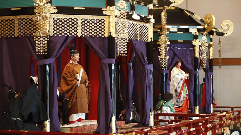 Nhật Hoàng Naruhito và Hoàng hậu Masako trong lễ đăng quang tại Hoàng cung Nhật Bản - Ảnh: Kyodo