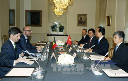 Thủ tướng Bỉ Charles Michel bày tỏ vui mừng được gặp lại và tiến hành hội đàm với Thủ tướng Nguyễn Tấn Dũng, đánh giá chuyến thăm lần này của Thủ tướng Nguyễn Tấn Dũng tiếp tục thể hiện sinh động quan hệ gần gũi giữa hai nước và là dịp quan trọng để hai bên cùng nhau đánh giá sự phát triển của hợp tác song phương, đề ra các phương hướng thúc đẩy quan hệ giữa hai nước trong giai đoạn tới, nhấn mạnh Bỉ mong muốn phát triển sâu rộng hơn nữa quan hệ hợp tác nhiều mặt với Việt Nam.