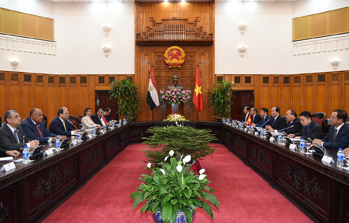 Chân thành cảm ơn Thủ tướng đã tiếp đón nồng ấm, chân thành, Tổng thống Abdel Fattah Al Sisi cho biết “chúng tôi luôn bày tỏ ngưỡng mộ, đánh giá cao, coi trọng Nhà nước, Chính phủ, nhân dân Việt Nam”. Ông cũng cho biết chuyến thăm Việt Nam lần này nhằm củng cố, khẳng định một lần nữa Ai Cập luôn coi trọng, mong muốn mở rộng hợp tác với Việt Nam trên tất cả các lĩnh vực. Nhân dịp này, Tổng thống Ai Cập gửi lời mời chính thức Thủ tướng Nguyễn Xuân Phúc thăm Ai Cập.