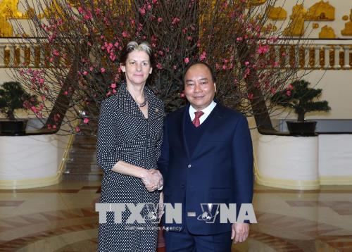 Thủ tướng Nguyễn Xuân Phúc tiếp bà Gerda Verburg, Trợ lý Tổng Thư ký Liên hợp quốc, Điều phối viên về Phong trào mở rộng quy mô dinh dưỡng. Ảnh: Thống Nhất - TTXVN