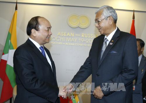 Tại cuộc gặp Tổng thống Myanmar Htin Kyaw, hai bên đánh giá cao mối quan hệ hữu nghị truyền thống và hợp tác nhiều mặt giữa Việt Nam và Myanmar trong thời gian qua, đồng thời khẳng định mong muốn tiếp tục mọi nỗ lực để đưa mối quan hệ và sự hợp tác đó ngày càng đi vào chiều sâu, có hiệu quả, nhất là trên các lĩnh vực đầu tư, thương mại. Myanmar đánh giá cao các nhà đầu tư của Việt Nam đang làm ăn tại Myanmar. Tổng thống Htin Kyaw cho biết, Chính phủ mới của Myanmar sẽ sớm xem xét các vấn đề Thủ tướng Nguyễn Xuân Phúc đã nêu liên quan đến việc tạo điều kiện cho các doanh nghiệp Việt Nam đầu tư tại Myanmar trong các lĩnh vực như dầu khí, bất động sản, viễn thông…, mời các doanh nghiệp Việt Nam đầu tư tại các đặc khu kinh tế Myanmar và bày tỏ mong muốn Việt Nam giúp kinh nghiệm trong lĩnh vực sản xuất nông nghiệp, nhất là trồng và chế biến cà phê và hồ tiêu xuất khẩu. Trong bối cảnh hai nước vừa có ban lãnh đạo mới, hai bên cho rằng cần đẩy mạnh việc trao đổi đoàn cấp cao và các cấp, tăng cường giao lưu nhân dân; duy trì các cơ chế hợp tác sẵn có, trong đó có Ủy ban hỗn hợp về hợp tác song phương; tăng cường phối hợp tại các diễn đàn khu vực và quốc tế; thúc đẩy và duy trì vai trò trung tâm của ASEAN trong các vấn đề an ninh, lợi ích chiến lược ở khu vực, bao gồm cả Biển Đông; đẩy mạnh hợp tác tại các cơ chế tiểu vùng như GMS, ACMECS, CLMV./.