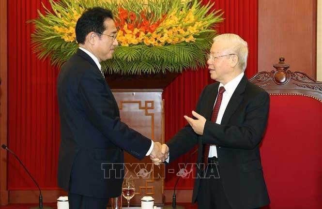 | Tổng Bí thư Nguyễn Phú Trọng tiếp Thủ tướng Nhật Bản Kishida Fumio sang thăm chính thức Việt Nam. Ảnh : Trí Dũng - TTXVN |