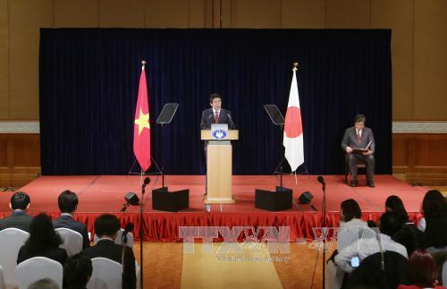 Thủ tướng Nhật Bản Shinzo Abe họp báo nhân chuyến thăm chính thức Việt Nam