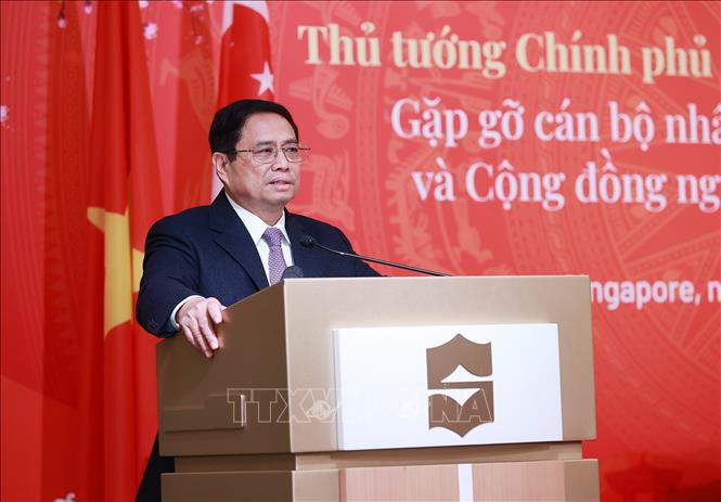Phát biểu tại buổi gặp mặt, Thủ tướng Phạm Minh Chính bày tỏ vui mừng được biết cán bộ, nhân viên các cơ quan đại diện và cộng đồng người Việt Nam tại Singapore đã đoàn kết, làm việc, sinh sống, lao động, học tập đầy sáng tạo, đổi mới, đạt kết quả cao; đồng thời giữ gìn bản sắc văn hóa Việt Nam ở sở tại; là cấu nối quan trọng trong quan hệ giữa hai nước.