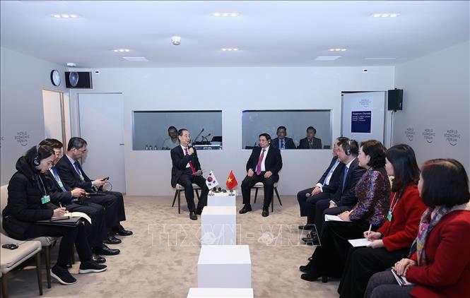 Nhân dịp tham dự Hội nghị Thường niên lần thứ 54 Diễn đàn Kinh tế Thế giới ở Davos, Thụy Sĩ (WEF Davos 2024), chiều 16/1 (giờ địa phương), Thủ tướng Chính phủ Phạm Minh Chính đã có các cuộc gặp với Nhà sáng lập kiêm Chủ tịch WEF Klaus Schwab, Thủ tướng Hàn Quốc Han Duck-soo, Tổng thống Ukraine Volodymyr Oleksandrovych Zelensky và Thủ tướng Vương quốc Bỉ Alexander De Croo.