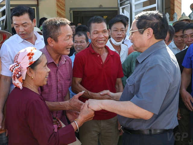 | Thủ tướng thăm hỏi đời sống, động viên các hộ gia đình nhường mặt bằng cho dự án. (Ảnh: VGP/Nhật Bắc) |