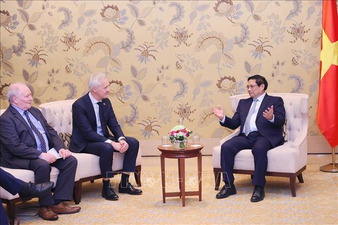 | Thủ tướng Phạm Minh Chính tiếp ông Robert Helms, Thành viên Hội đồng quản trị Tập đoàn CIP và Chủ tịch Tập đoàn Enterprize Energy Ian-Hatton. Ảnh: Dương Giang/TTXVN. |