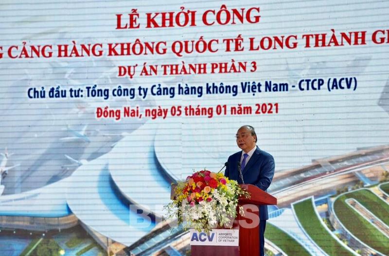 Phát biểu chỉ đạo tại buổi Lễ, Thủ tướng Chính phủ Nguyễn Xuân Phúc nhấn mạnh, hạ tầng cơ sở đóng vai trò như mạch máu phát triển kinh tế - xã hội và đảm bảo an ninh quốc gia. Việt Nam được quốc tế vinh danh là nền kinh tế năng động, tăng trưởng nhanh tại khu vực, với GDP tăng trưởng bình quân 6,5% mỗi năm trong 10 năm qua. Năm 2020, chúng ta là nền kinh tế mới nổi thành công trong kiểm soát dịch bệnh và tăng trưởng kinh tế. Nhà đầu tư nước ngoài coi Việt Nam như điểm đến đầu tư vững chắc, tới nay đã có 384 tỷ USD đầu tư, với 33.000 dự án, đã thực hiện 230 tỷ USD....