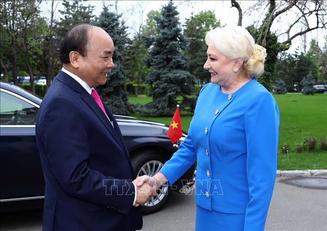 Ngay khi đoàn xe Thủ tướng Chính phủ Nguyễn Xuân Phúc từ từ tiến vào cổng và dừng tại sảnh chính Phủ Thủ tướng Romania, Thủ tướng Romania Viorica Dancila đã trân trọng tới đón và bắt tay Thủ tướng Chính phủ Nguyễn Xuân Phúc tại nơi đỗ xe.