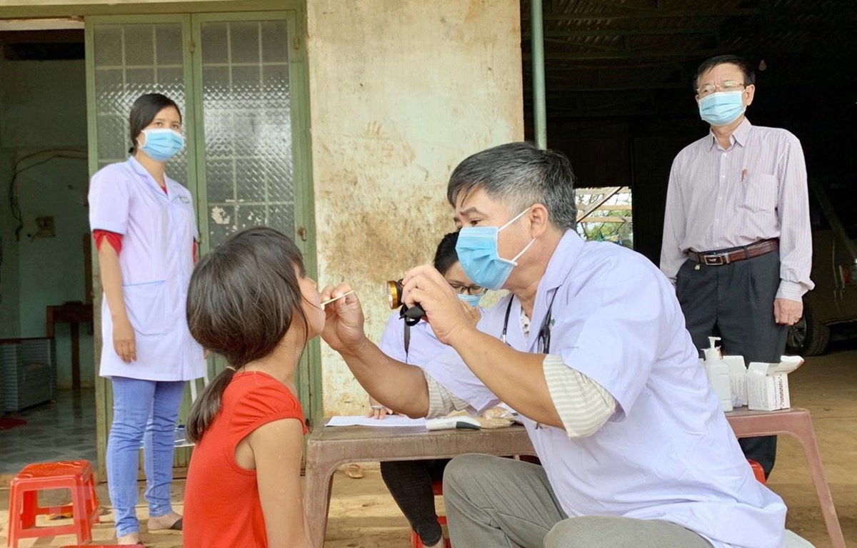 Ngành y tế tỉnh Gia Lai thực hiện khám sàng lọc cho người dân tại làng Bông Hiot, xã Hải Yang, huyện Đak Đoa- nơi có ca bệnh bạch hầu tử vong. (Ảnh: Quang Thái/TTXVN)