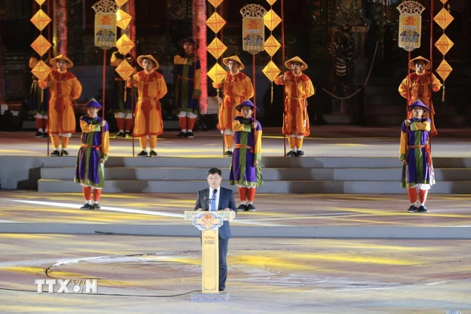 Phó Chủ tịch Thường trực UBND tỉnh Thừa Thiên Huế Nguyễn Thanh Bình, Trưởng ban Tổ chức Festival Huế 2024 phát biểu bế mạc. (Ảnh: Minh Quyết/TTXVN)
