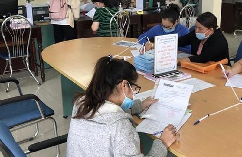 | Người lao động làm hồ sơ đăng ký hưởng trợ cấp thất nghiệp tại Trung tâm dịch vụ việc làm tỉnh (Ảnh: Quỳnh Nga) |