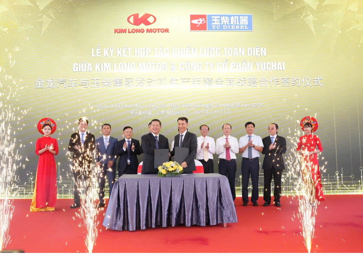 Dịp này, Công ty Cổ phần Kim Long Motor Huế và Công ty Cổ phần YUCHAI chính thức ký kết thỏa thuận hợp tác chiến lược toàn diện về sản xuất, chế tạo động cơ tại Việt Nam, đánh dấu bước ngoặt quan trọng không chỉ với Kim Long Motor mà còn đối với ngành công nghiệp ô tô Việt Nam.