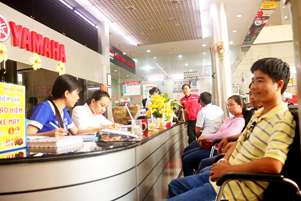 Khách hàng mua xe tại hệ thống Yamaha Hồng Phúc (ở quận Ninh Kiều) đều hài lòng trước sự hỗ trợ của nhân viên trong việc thực hiện thủ tục đăng ký xe. Ảnh: CHẤN HƯNG