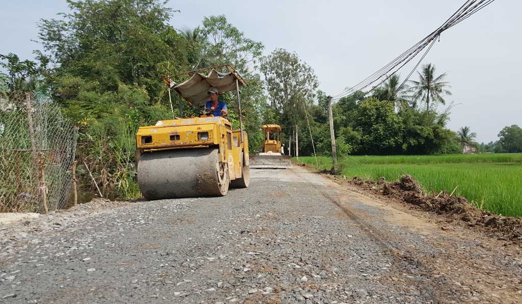 Công trình đường kênh Tám Hương đang được đầu tư thực hiện, góp phần đưa xã Thuận Thành, huyện Cần Giuộc hoàn thành tiêu chí giao thông theo chuẩn mới