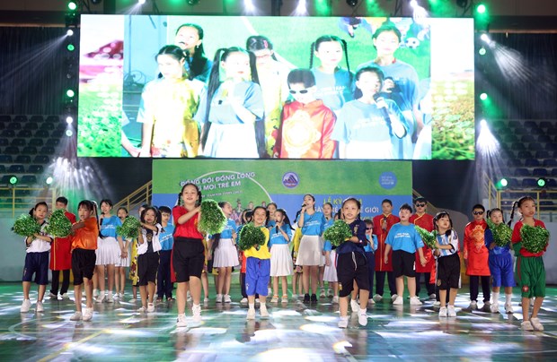 Thiếu nhi biểu diễn các tiết mục văn nghệ tại Lễ kỷ niệm ngày Trẻ em thế giới. (Ảnh: Trần Lê Lâm/TTXVN)