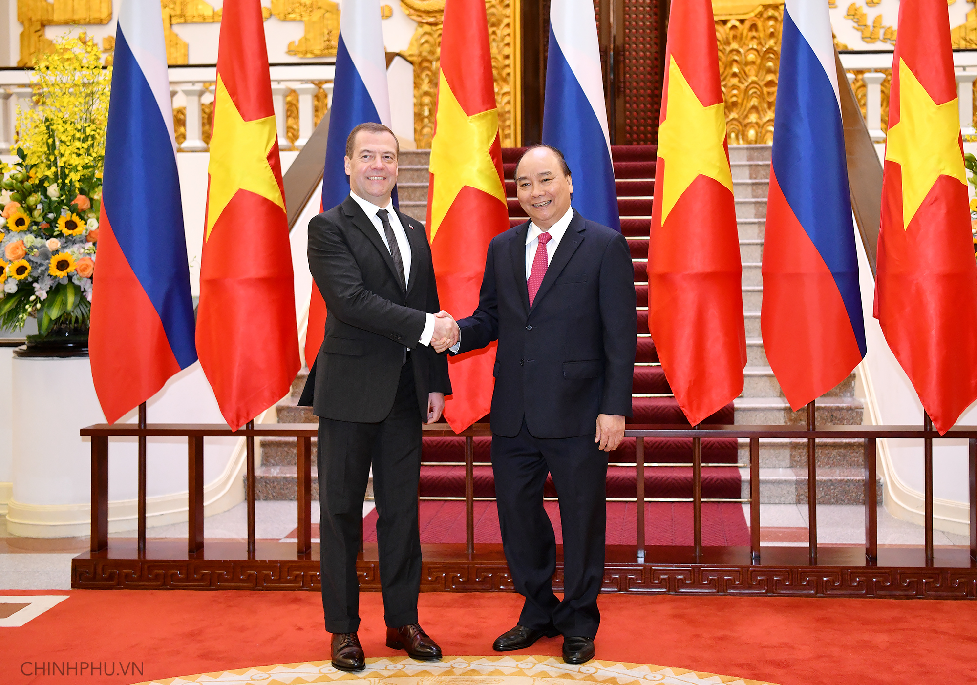 Thủ tướng Chính phủ Nguyễn Xuân Phúc chào mừng và đánh giá cao chuyến thăm chính thức Việt Nam của Thủ tướng Mét-vê-đép, tiếp nối chuyến thăm chính thức Liên bang Nga của Tổng Bí thư Nguyễn Phú Trọng vào tháng 9/2018 vừa qua; khẳng định chủ trương nhất quán của Việt Nam luôn coi trọng, ưu tiên quan hệ hữu nghị truyền thống và Đối tác chiến lược toàn diện Việt Nam - Liên bang Nga.