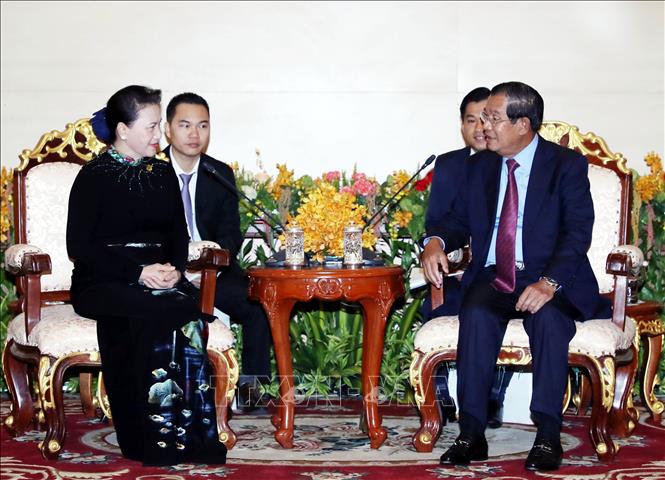 Bên lề Hội nghị thường niên lần thứ 27 Diễn đàn Nghị viện châu Á – Thái Bình Dương (APPF-27), ngày 15/1, tại Siem Reap (Xiêm Riệp), Campuchia, Chủ tịch Quốc hội Nguyễn Thị Kim Ngân đã hội kiến Samdech Akka Moha Sena Padei Techo Hun Sen (Xăm-đéc Ắc-ca Mô-ha Xê-na Pâ-đê Tê-chô Hun-xen), Thủ tướng Vương quốc Campuchia.