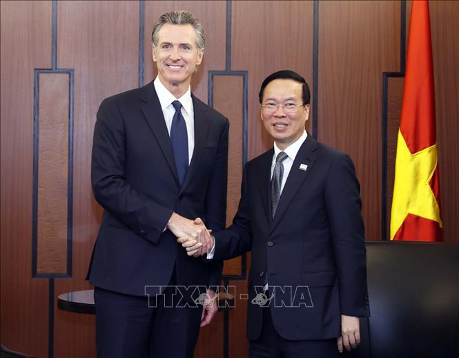 Ngày 15/11 (theo giờ địa phương), tại thành phố San Francisco, Chủ tịch nước Võ Văn Thưởng đã tiếp ông Gavin Newsom, Thống đốc bang California và Phó Thị trưởng thành phố Los Angeles Erin Bromaghim nhân dịp Chủ tịch nước tham dự Tuần lễ Cấp cao Diễn đàn Hợp tác Kinh tế châu Á - Thái Bình Dương (APEC) 2023 và kết hợp hoạt động song phương tại Hoa Kỳ.