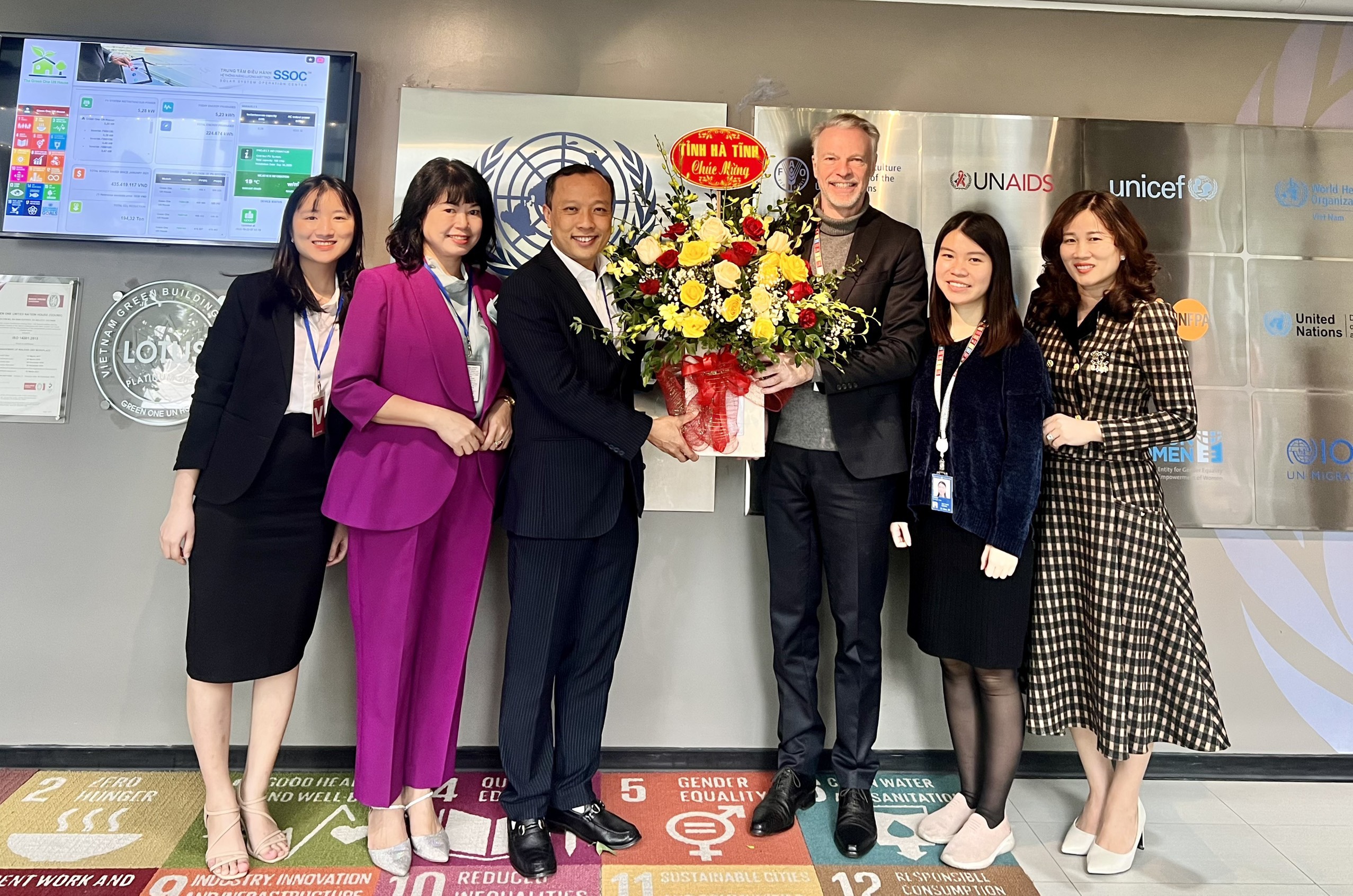 | Đoàn công tác của tỉnh Hà Tĩnh chúc mừng Tổ chức UNESCO tại Việt Nam (Ảnh: Thu Hương) |