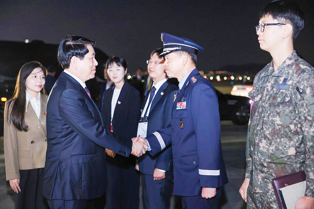 Tiễn Chủ tịch nước Lương Cường tại sân bay Gimhae, kết thúc tốt đẹp chuyến tham dự Tuần lễ Cấp cao APEC lần thứ 32 và làm việc song phương tại Hàn Quốc. Ảnh: LÂM KHÁNH (TTXVN)