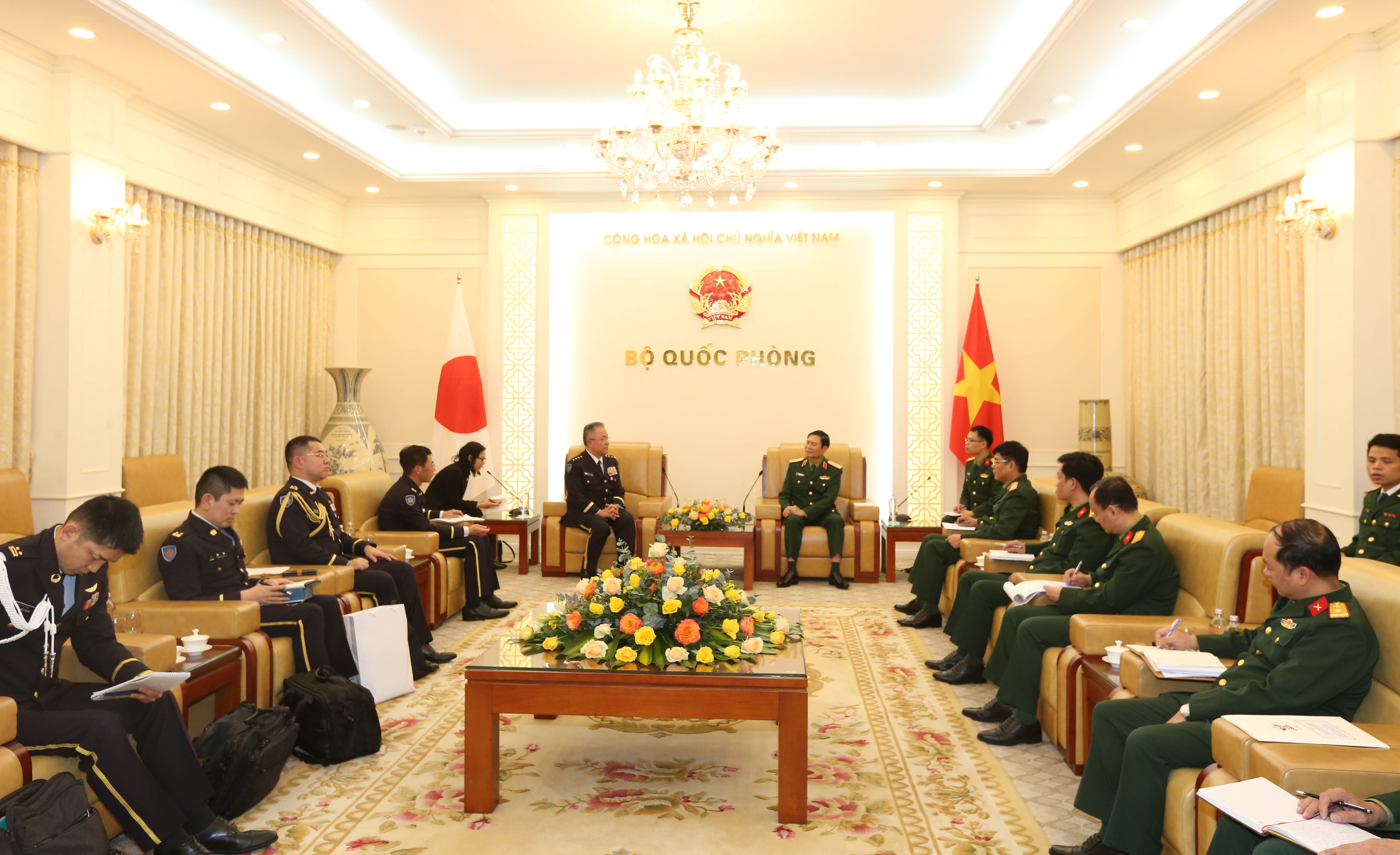 Trước đó, chiều cùng ngày, Đoàn Bộ Tổng Tham mưu Quân đội nhân dân Việt Nam và Đoàn Tham mưu trưởng Lực lượng Tự vệ mặt đất Nhật Bản đã tiến hành hội đàm dưới sự đồng chủ trì của Trung tướng Nguyễn Văn Nghĩa, Phó Tổng Tham mưu trưởng Quân đội nhân dân Việt Nam và Đại tướng Yoshida Yoshihide, Tham mưu trưởng Lực lượng Tự vệ mặt đất Nhật Bản. Tại Hội đàm, hai bên thống nhất đánh giá một số nội dung về quan hệ hợp tác giữa Lục quân hai nước, đặc biệt là trong triển khai các văn bản đã được Bộ Quốc phòng hai nước ký kết. Hai bên cũng thống nhất thời gian tới sẽ tiếp tục thúc đẩy những nội dung hợp tác mới hai bên cùng quan tâm, có tính khả thi cao. Các cơ quan của Bộ Tổng Tham mưu Quân đội nhân dân Việt Nam sẵn sàng hợp tác với Lực lượng tự vệ mặt đất Nhật Bản tiếp tục triển khai có hiệu quả các lĩnh vực hợp tác như trao đổi đoàn, tham gia hoạt động gìn giữ hòa bình của Liên hợp quốc, quân y, an ninh mạng, đào tạo nguồn nhân lực, cứu hộ cứu nạn và duy trì hiệu quả tham vấn sỹ quan tham mưu Lục quân.../.