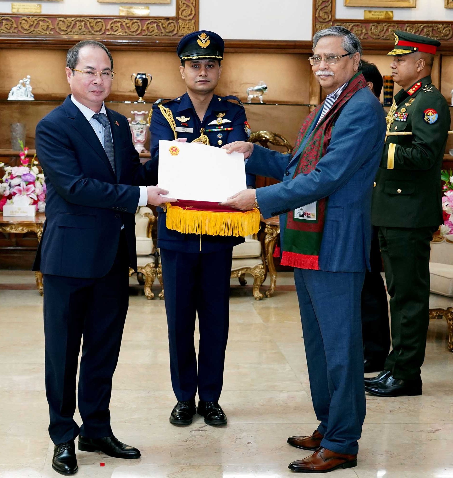 Ngày 21/6, tại thủ đô Dhaka, Đại sứ Việt Nam tại Bangladesh Nguyễn Mạnh Cường trình Thư ủy nhiệm của Chủ tịch nước Võ Văn Thưởng lên Tổng thống Mohammed Shahabuddin.