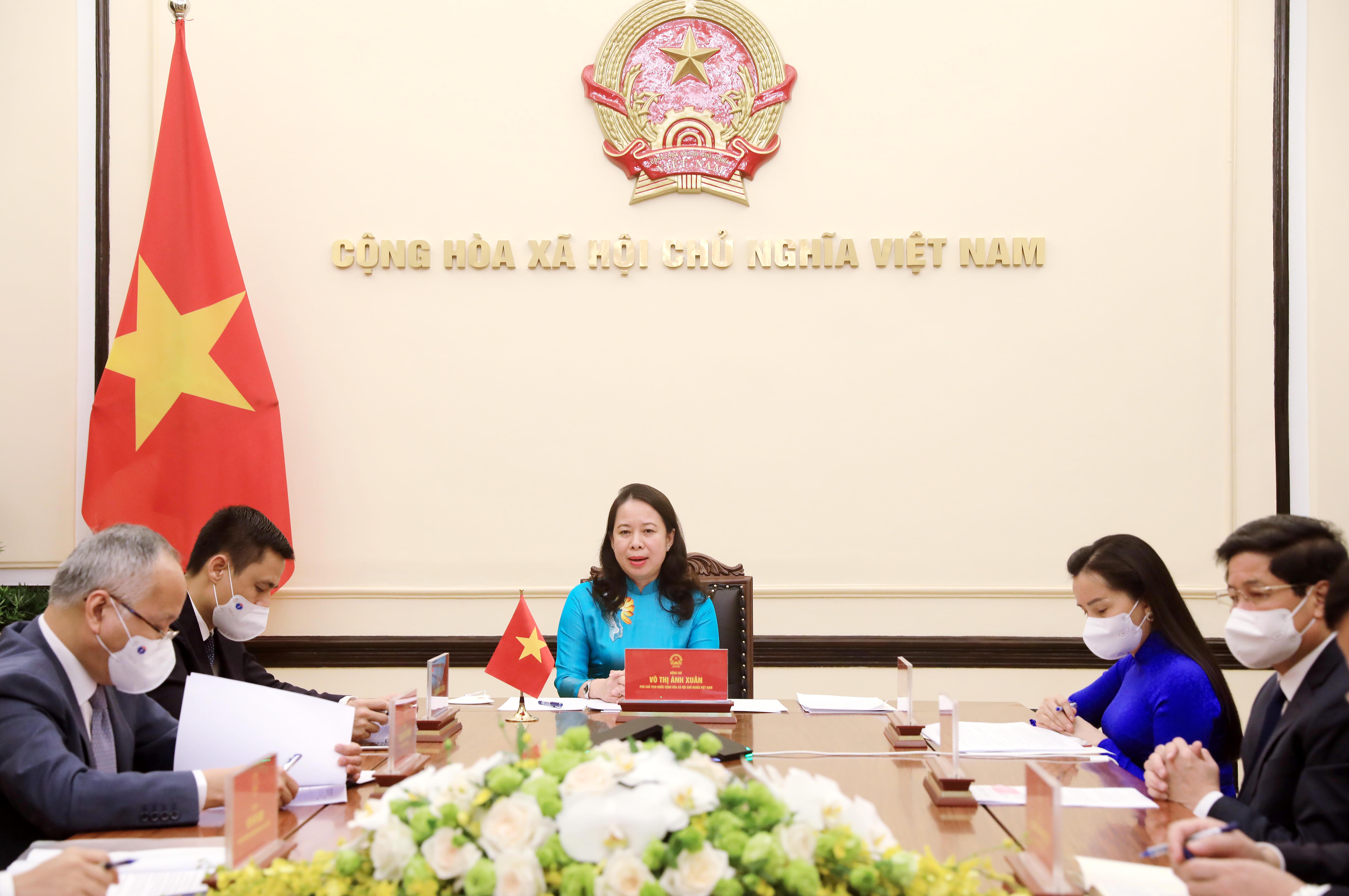 | Phó Chủ tịch nước Võ Thị Ánh Xuân tại buổi điện đàm |