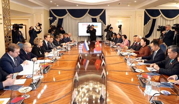 Chủ tịch Quốc hội Nguyễn Thị Kim Ngân hoan nghênh Quốc hội hai nước luôn ủng hộ và phối hợp chặt chẽ trên trường quốc tế, tích cực tham gia vào các diễn đàn đa phương do hai bên tổ chức. Trên cương vị Chủ tịch AIPA 41 vào năm 2020, Quốc hội Việt Nam sẽ tiếp tục thúc đẩy hơn nữa quan hệ Đối tác chiến lược giữa ASEAN và Nga.