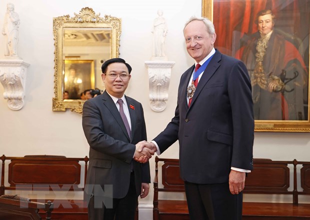Tiếp theo chương trình làm việc trong khuôn khổ chuyến thăm chính thức Vương quốc Anh, chiều 29/6 (theo giờ địa phương), tại thủ đô London, Chủ tịch Quốc hội Vương Đình Huệ đã gặp Quyền Thị trưởng Khu tài chính London Peter Estlin.
