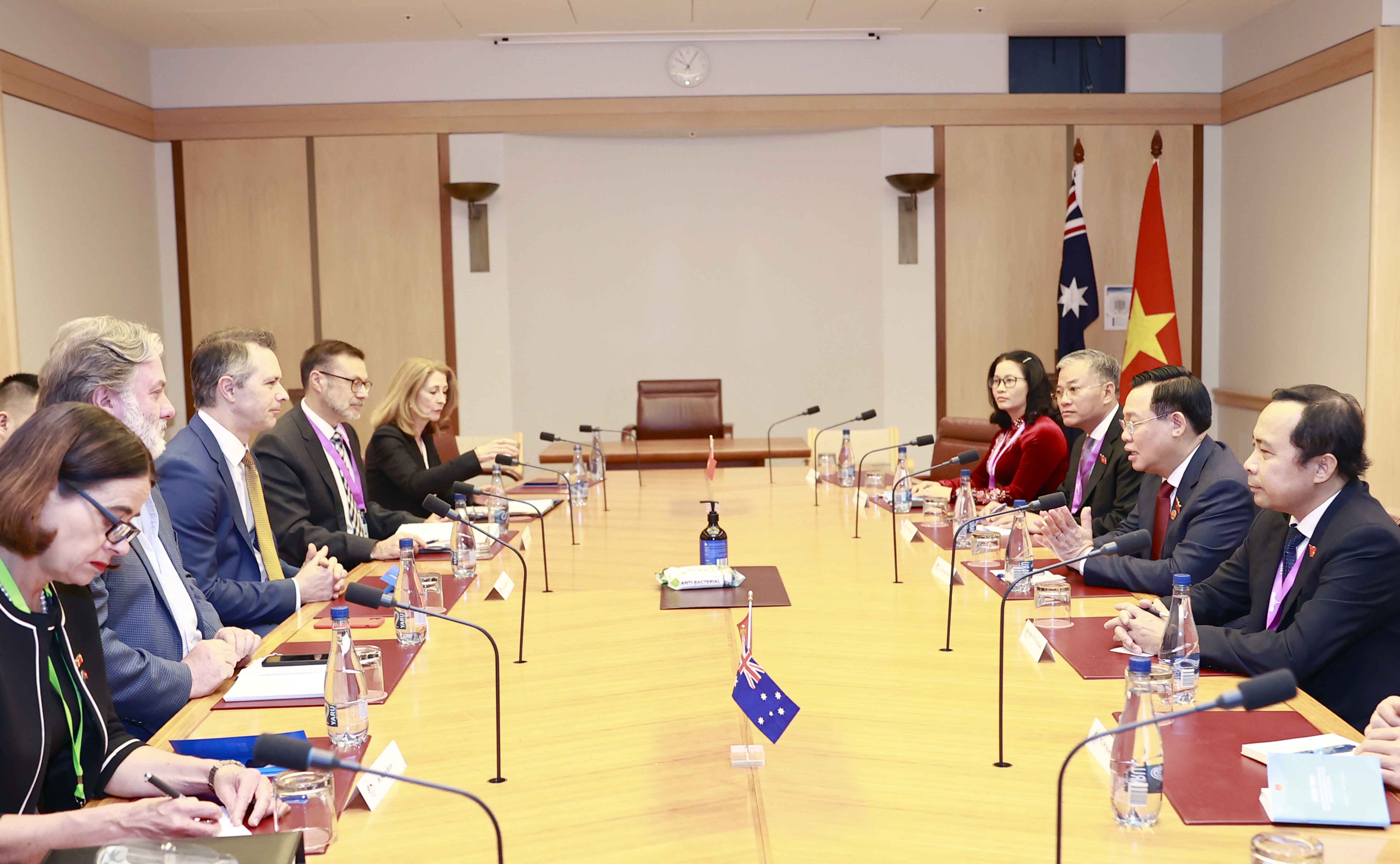 Chủ tịch Quốc hội mong muốn, trong vai trò của mình, Lãnh tụ đảng Đối lập tại Hạ viện Peter Dutton và Thượng nghị sĩ Simon Birmingham tiếp tục đóng góp tích cực cho quan hệ Đối tác Chiến lược Việt Nam-Australia. Hạ nghị sĩ Peter Dutton và Thượng nghị sĩ Simon Birmingham nhất trí phối hợp với các cơ quan đối tác của Việt Nam để tiếp tục thúc đẩy hợp tác trong các lĩnh vực cụ thể, trong đó có trao đổi đoàn, tăng cường hợp tác dưới nhiều hình thức giữa Đảng Cộng sản Việt Nam với các chính đảng Australia, triển khai các cơ chế hợp tác, phối hợp thúc đẩy triển khai các văn kiện đã ký kết giữa hai nước, nghiên cứu mở rộng hợp tác trong các lĩnh vực biến đổi khí hậu, tăng trưởng xanh, chuyển đổi năng lượng, chuyển đổi số, kinh tế số.... Lãnh tụ đảng Đối lập tại Hạ viện Peter Dutton và Thượng nghị sĩ Simon Birmingham nhất trí với Chủ tịch Quốc hội về việc tiếp tục hỗ trợ, tạo điều kiện cho cộng đồng người Việt Nam, trong đó có hơn 30 nghìn học sinh, sinh viên Việt Nam tại Australia sinh sống, làm việc, học tập, đóng góp cho sự phát triển của Australia và quan hệ hai nước.