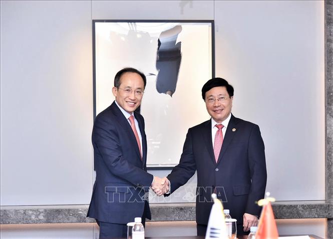 Trong khuôn khổ chuyến thăm cấp Nhà nước tới Hàn Quốc của Chủ tịch nước Nguyễn Xuân Phúc, ngày 6/12, tại Seoul, Phó Thủ tướng Thường trực Chính phủ Phạm Bình Minh đã có cuộc gặp và làm việc với Phó Thủ tướng kiêm Bộ trưởng Kế hoạch Tài chính Hàn Quốc Choo Kyung-ho.