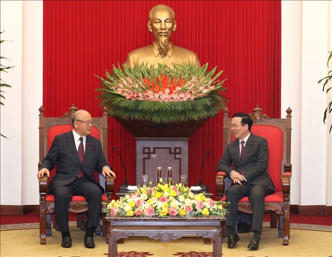 | Thường trực Ban Bí thư Võ Văn Thưởng tiếp Cố vấn đặc biệt Liên minh Nghị sỹ hữu nghị Nhật Việt. (Ảnh: TTXVN) |