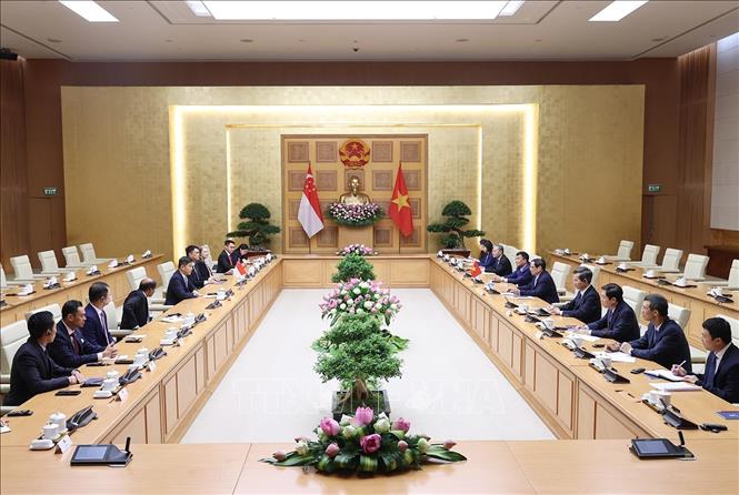 Thủ tướng Phạm Minh Chính đề nghị hai bên đẩy mạnh các chuyến thăm, tiếp xúc cấp cao và các cấp ở tất cả các kênh; triển khai hiệu quả các cơ chế, thỏa thuận hợp tác song phương, nhất là Hội nghị Bộ trưởng về kết nối kinh tế Việt Nam - Singapore.